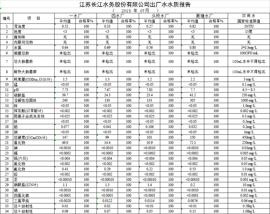 自來水水質報告(2019年7月份)