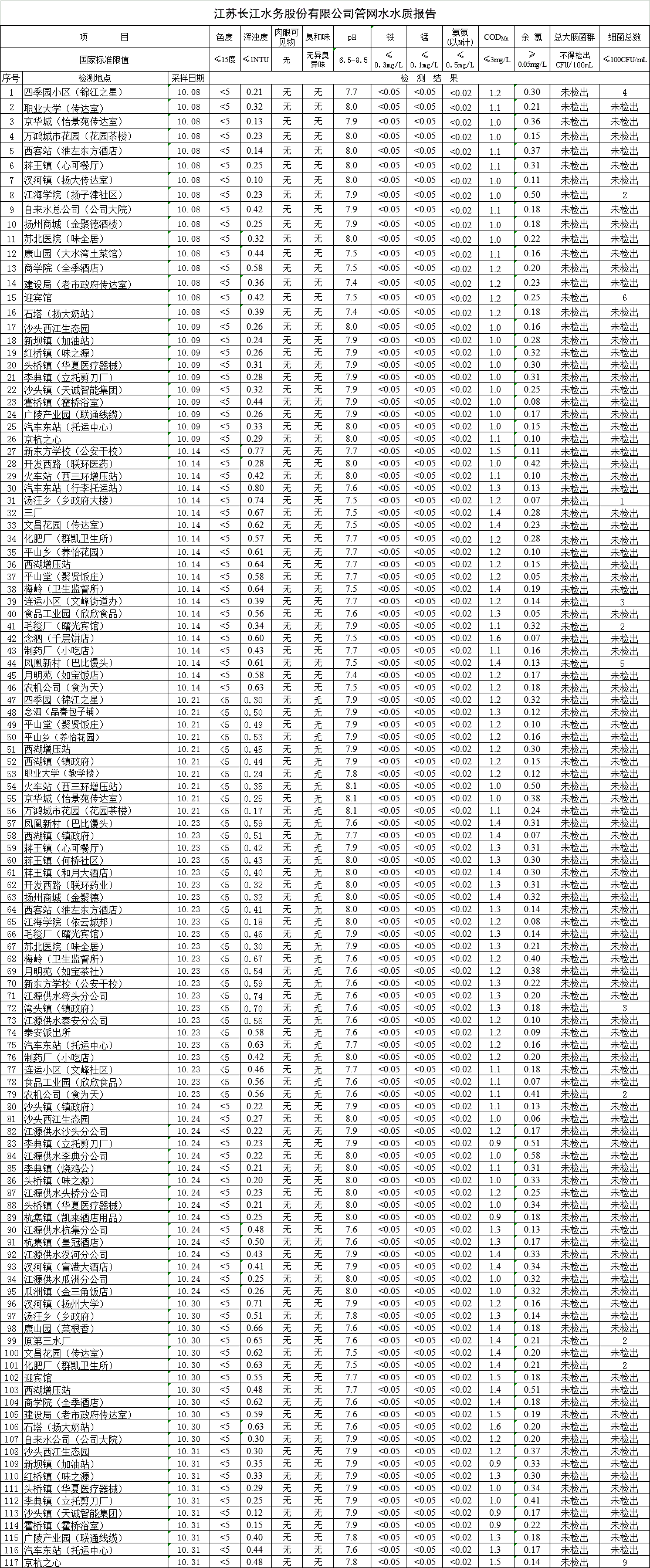 自來水水質報告(2019年10月份)