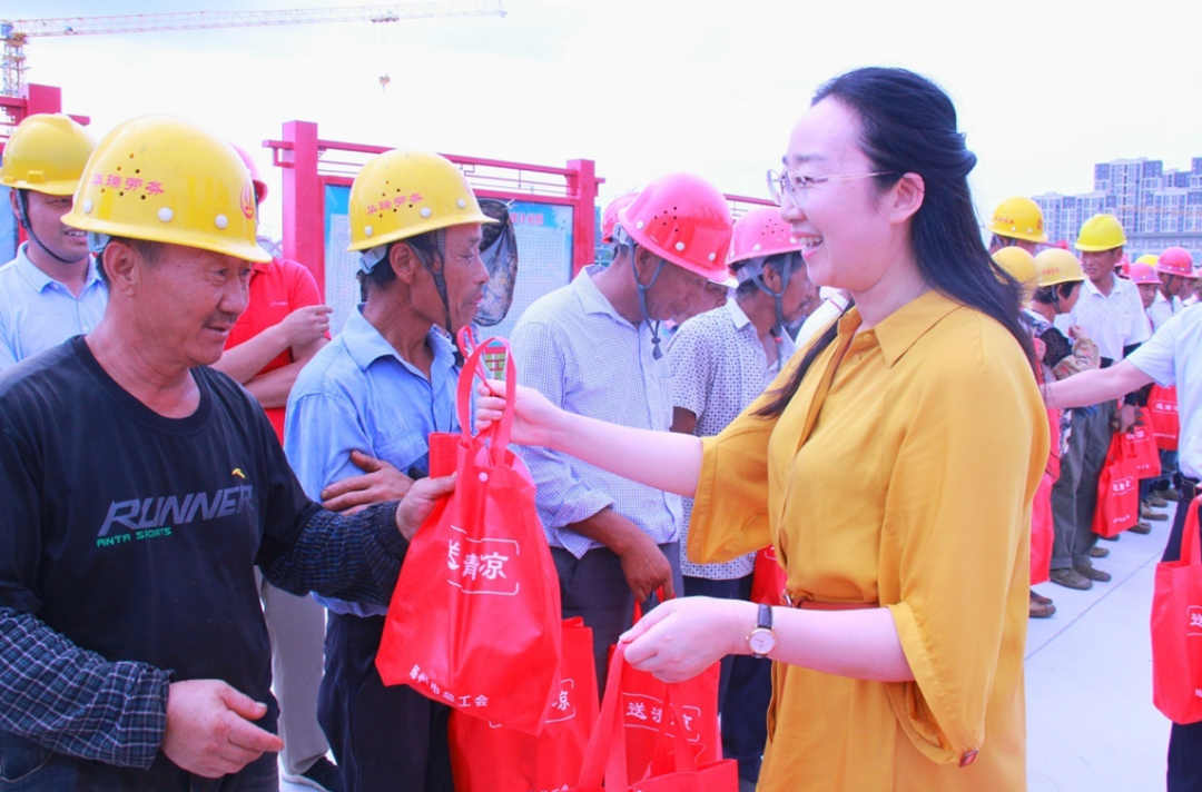 洪慧娟深入施工現場,仔細察看了施工環境,詳細了解了工程進度,親切詢問了職工們的作息時間,對大家頂烈日冒酷暑地辛勤工作和項目部各類嚴謹可行的高溫保障措施表示高度贊揚,并為他們送上了花露水、毛巾等解暑降溫的慰問物資。