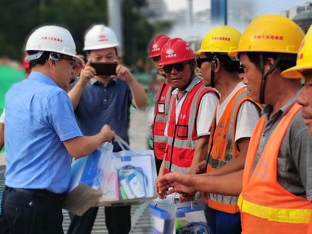 8月17日至8月20日,城控集團分九個小組,由領導班子成員分別帶隊到集團重點工程、民生項目現場和公用服務崗位,看望慰問奮戰在一線的勞動者,為他們送去清涼解暑用品,向奮戰在高溫一線的廣大干部職工致以崇高敬意和誠摯問候。