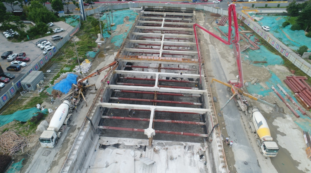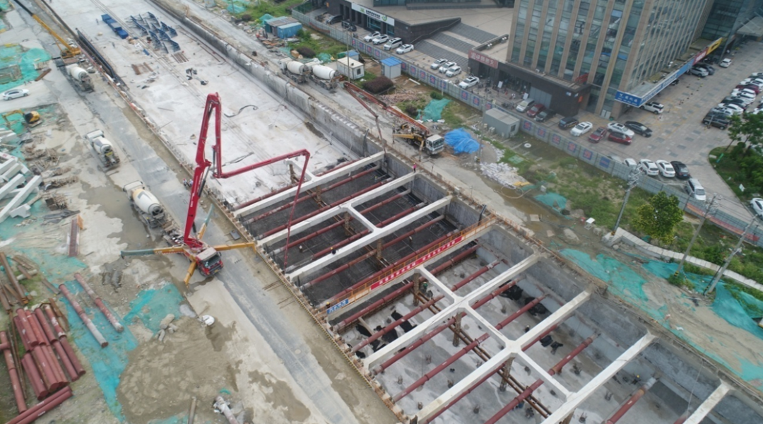 8月21日23:10,經過近10小時的連續作業,運河南北路文昌路隧道首塊大體積混凝土底板澆筑完成,共計澆筑混凝土833.28方。