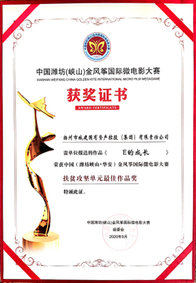 近日,第四屆中國(濰坊峽山·華安)金風箏國際微電影大賽榮譽盛典在濰坊峽山區國際微電影城隆重舉行。由城控集團黨委、紀委選送的微電影《e的成長》榮獲“扶貧攻堅單元最佳作品獎”。