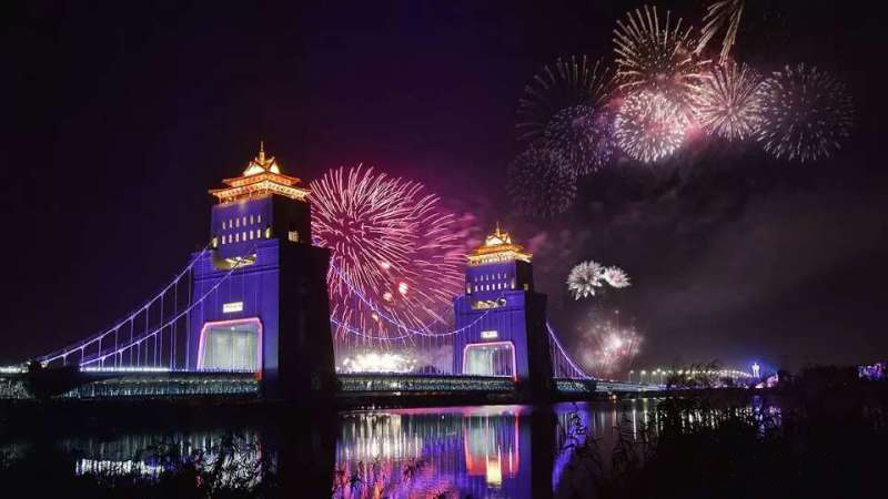 新建萬福大橋是我國首座塔梁古建相結合的雙層景觀橋,也是揚州城市新地標。大橋全長664米,主跨188米,橫跨淮河入江水道主河道廖家溝。主橋為雙塔自錨式懸索橋,橋型融現代美與古典美于一體,總體風格為亭臺樓閣,設計獨特新穎,造型古樸典雅,與揚州城市歷史悠久、文化燦爛的厚重氣質相得益彰。登上塔樓俯瞰,南面的長江和夾江,北面的邵伯湖和高郵湖,壯闊的江淮生態大走廊一覽無余;江都老城和揚州古城,廣陵新城和生態科技新城也都盡收眼底。新建萬福大橋就像揚州的“眼睛”一般,因此被譽為“揚州眼”。