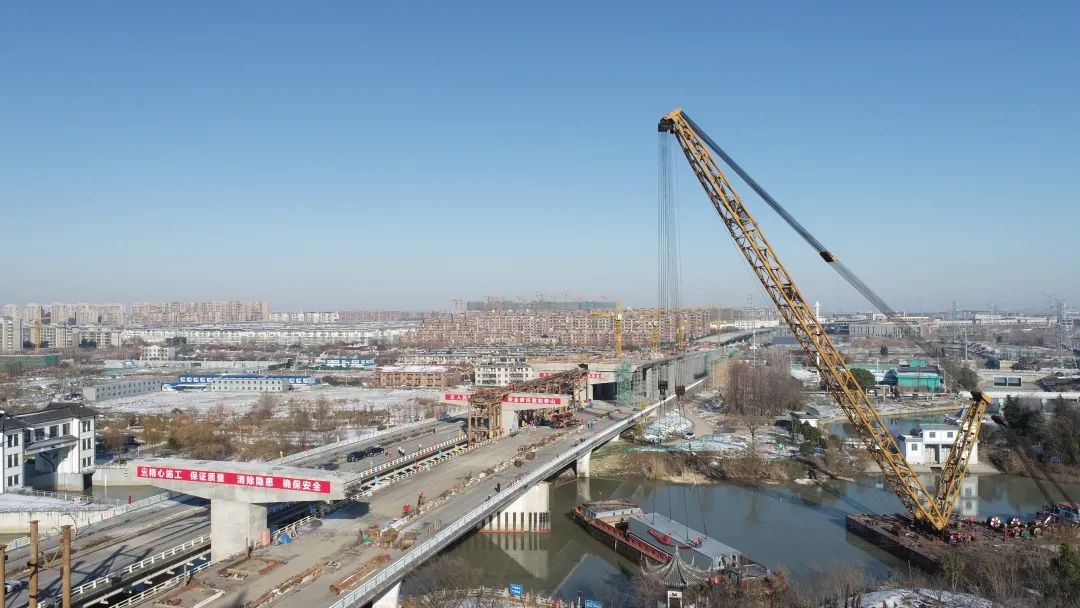 近日,揚州運河南北路快速化改造二期工程又一次迎來重大節點:跨古運河段夫差橋首段鋼箱梁成功吊裝,標志著項目關鍵施工節點取得了階段性勝利。