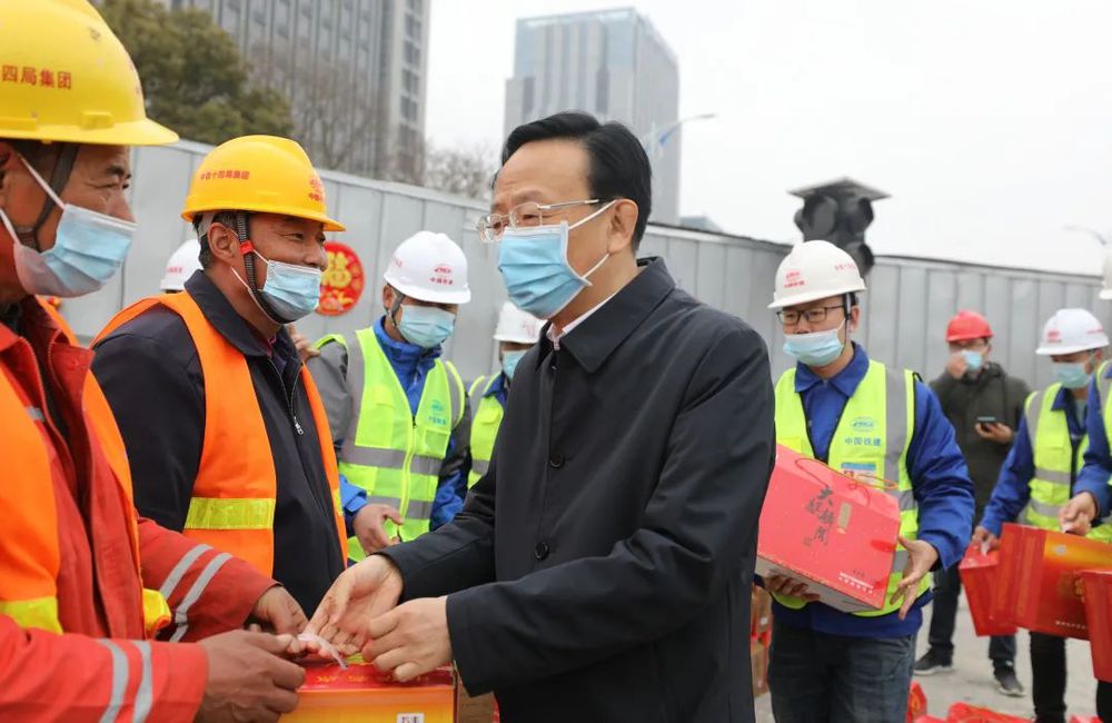 2月11日,農歷除夕,市委書記夏心旻來到潤揚路快速化改造工程(百吉巷—同泰路北)項目現場,走訪慰問節日堅守崗位的快速路項目留揚務工人員。市委常委、秘書長韓驊,副市長趙慶紅等陪同慰問。城控集團黨委書記、董事長葉善祥,副總經理季紅軍參加活動。