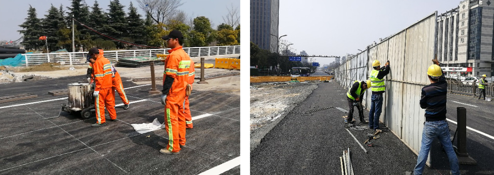 為確保交通導改施工順利進行,萬福公司和項目部多次與交警、路政部門積極溝通協調,對導改方案進行反復論證、修訂和完善。在導改過程中,項目參建人員各司其職,一方面加大對施工現場的保護和監督,另一方面,嚴格落實安全員在崗制度,在相關路段設置提示標志,切實保障了交通的安全暢通。