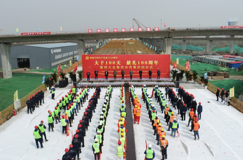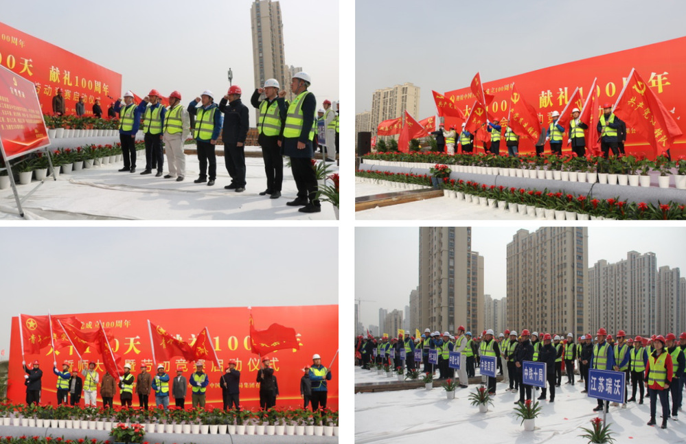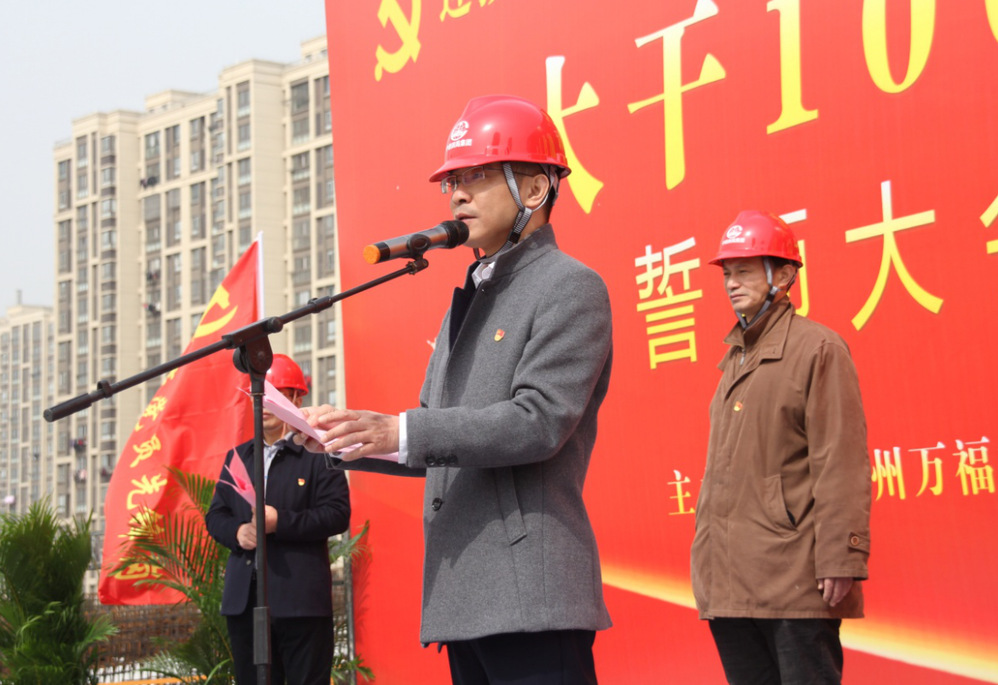 “大干100天,獻禮100周年”勞動競賽將以建設管理為主線,以質量創優為核心,以安全生產為重點,以確保工期為目標,以創新創效為動力,以項目黨建為引領,在確保施工安全和工程質量的前提下,主要圍繞“安全生產、工程質量、工程管理、創新創效、廉潔自律、項目文化及疫情防控七個方面開展?;顒又?,各參建單位進行了莊嚴的宣誓,參加活動的領導為“黨員先鋒隊”“青年突擊隊”進行了授旗,萬福公司及參賽單位負責人作了表態發言,市總工會勞經部部長賀光明、城控集團黨委副書記徐飛在活動中作了動員講話。
