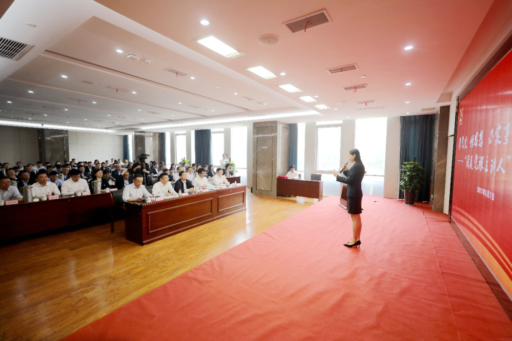 為慶祝中國共產黨成立100周年,進一步深入推進黨史學習教育,營造崇學尚學比學的濃厚氛圍,引導和動員全集團上下做到學史明理、學史增信、學史崇德、學史力行,5月7日下午,集團黨委舉辦了“學黨史 悟思想 辦實事 開新局——我是黨課主講人”選拔賽。市委第十二巡回指導組副組長包慶杰、市委組織部組織處處長孫明、市委黨校培訓處處長丁健應邀出席并擔任評委,集團黨委書記、董事長葉善祥出席活動并講話,集團領導班子成員、中層干部、下屬單位黨組織主要負責人、分管負責人、基層黨支部書記、黨務部門負責人及黨員代表近100人參加活動。