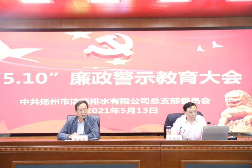 5月13日,潔源排水公司召開了廉政警示教育大會,公司領導班子成員、全體中層干部、重點崗位人員共50余人參加此次會議。