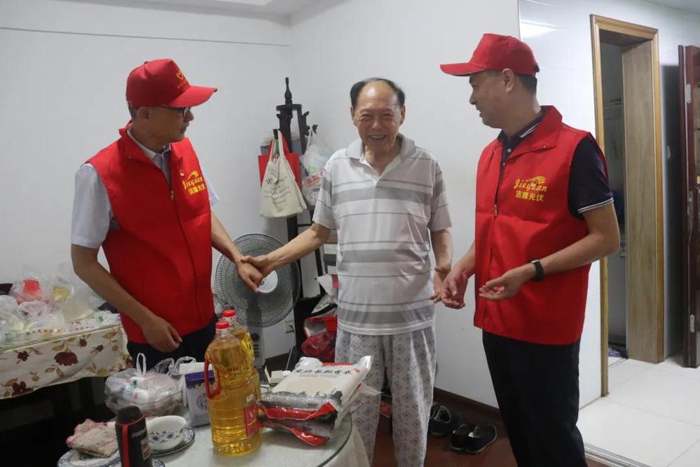 活動中,大家陸續走訪了聯誼南園社區的3位老黨員,送上了米、油等日常生活用品,并與他們親切交談,詳細了解他們的身體情況和家庭狀況,互相交流了入黨初衷和黨史學習教育心得體會;隨后,大家帶上掃帚、夾子等工具,蹲下身、低下頭,清理生活垃圾、規范車輛擺放,使小區的環境面貌得到了極大改善,獲得了居民群眾的紛紛稱贊。