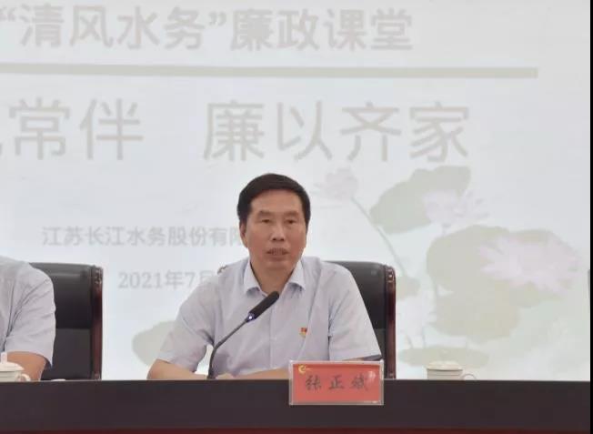 城控集團黨委委員、長江水務黨委書記、董事長張正斌發表講話,他分別從家和萬事興、量變引起質變、小心成為“獵物”這三個方面給在場所有人員再次敲響廉政警鐘。他表示,長江水務多年來各項工作取得的長足發展,飽含全體員工的辛勤付出和努力,更離不開職工家屬的關心與支持。家風是黨風的重要組成部分,家風連著黨風,家廉才能政廉,全體黨員干部要從百年黨史中傳承優良家風,把修身齊家落到實處,要和家人同心協力,守好家庭防線,真正把家風建設內化于心、外化于行,做到修身律己、廉潔齊家,為扎實推進公司全面從嚴治黨向縱深發展,譜寫公司高質量發展新篇章提供堅強保障。