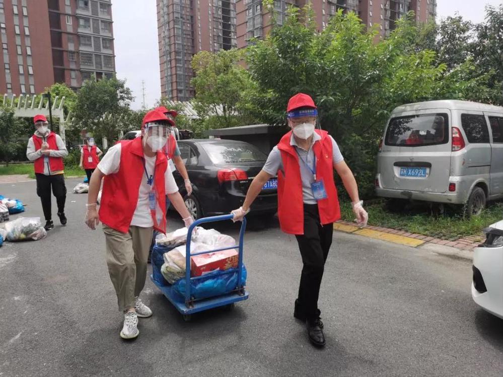為更好地在抗疫一線發揮基層黨組織的戰斗力和黨員的先鋒模范作用,8月8日,第一批次出征高風險地區——武塘社區的志愿服務先鋒部隊經集團黨委批準,率先成立了抗疫志愿服務行動臨時黨支部,讓黨旗第一時間飄揚在疫情防控第一線。