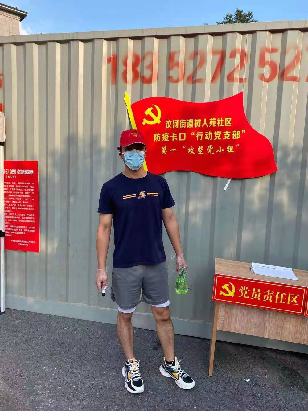 置業公司張軍,在瘦西湖街道濱湖社區,24小時在崗值守,查看小區出入人員健康碼和通行證,并組織核酸檢測和志愿者服務工作。