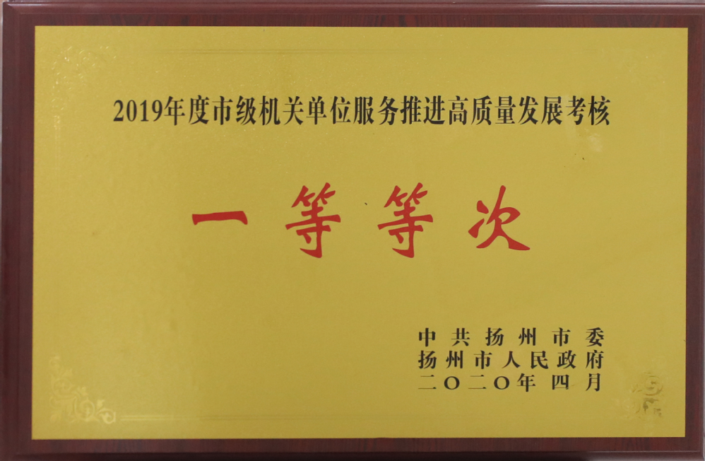 2019年度市級機關單位服務推進高質量發展考核一等等次