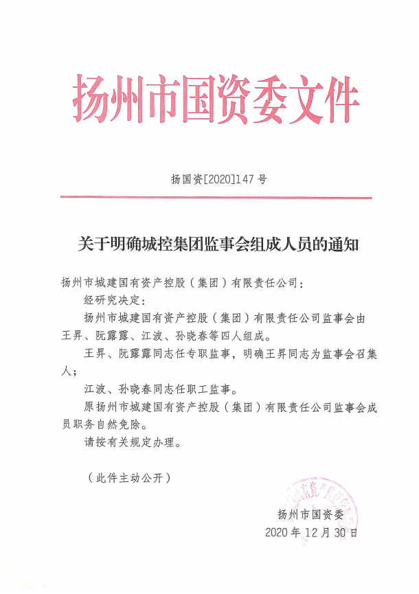 關于明確城控集團監事會組成人員的通知