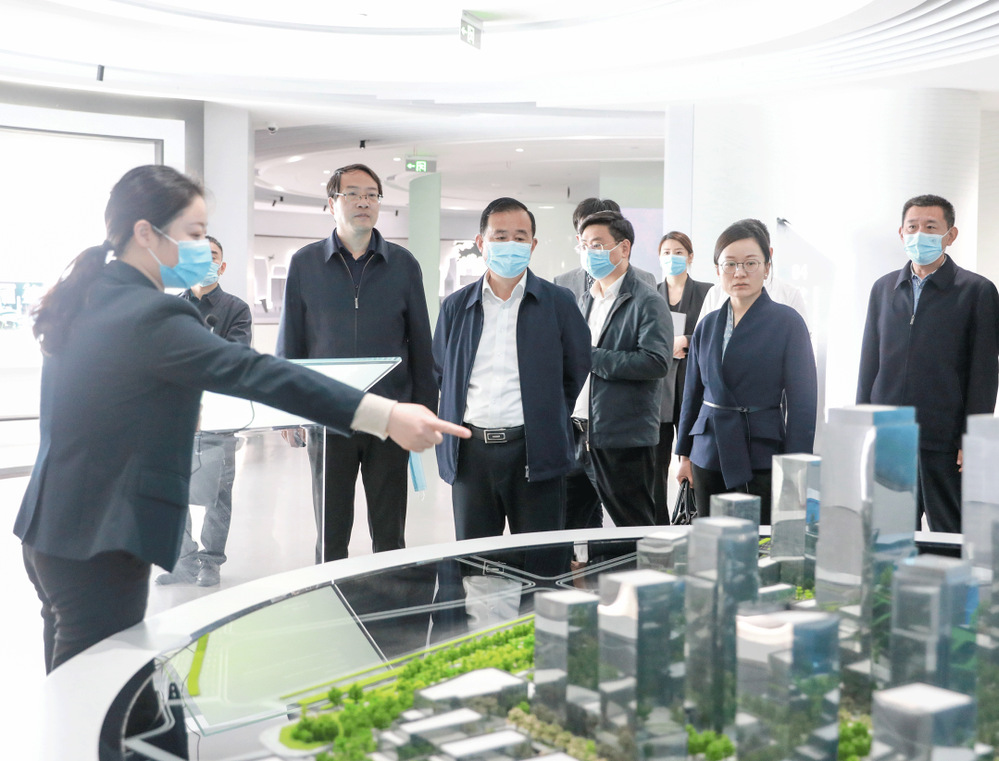 在生態科技新城城市展廳,葉善祥詳細了解生態科技新城的發展規劃,對生態科技新城高起點規劃、高標準建設、高品質推進揚州新中心建設工作表示贊許。