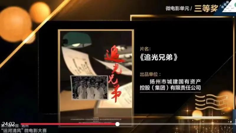 備受關注的第二屆中國·揚州“運河清風”微電影大賽頒獎活動于6月19日在揚州運河大劇院舉行。本屆大賽由中國紀檢監察雜志社、江蘇省紀委監委、揚州市紀委監委、揚州市委宣傳部共同主辦。大賽共征集到參賽作品1600余部,經大賽組委會初評、復評、終評三輪評審,由城控集團拍攝的《追光兄弟》榮獲大賽微電影單元三等獎。