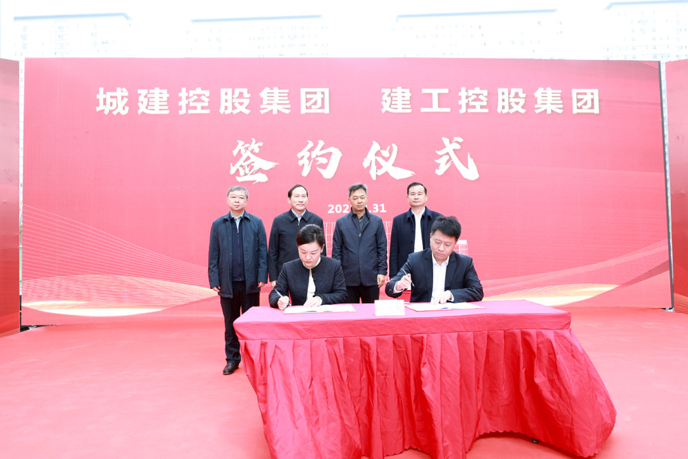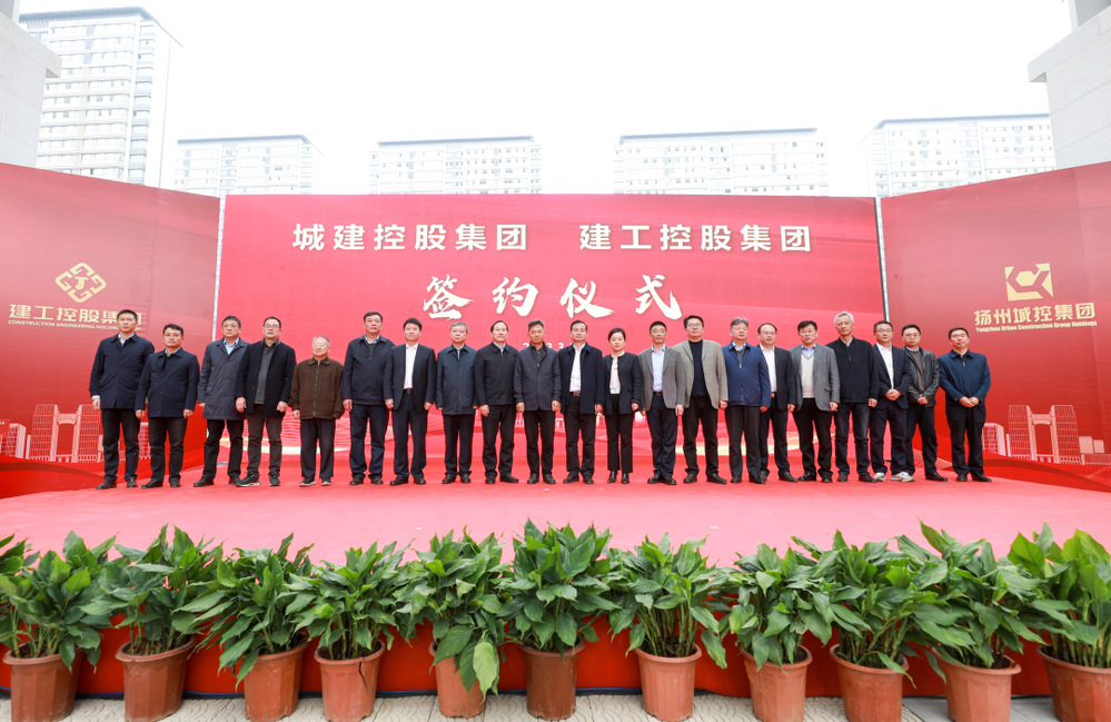 3月31日上午,城控集團與建工控股就入駐城建廣場A2樓舉行簽約儀式。廣陵區人大常委會主任趙長松,市國資委主任凌衛東、城控集團黨委書記、董事長葉善祥,建工控股黨委書記、董事長王宏出席簽約儀式并登臺見證。城控集團總經理潘涵與建工控股總經理吳碧橋代表雙方進行簽約。雙方全體領導班子參加活動。