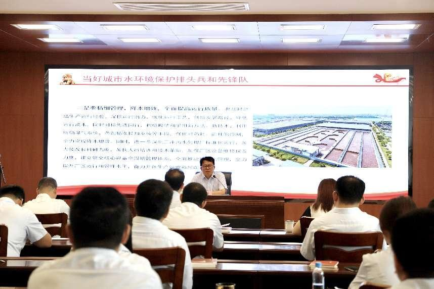 周平以《深入學習習近平生態文明思想,推動城市污水處理實現新跨越》為題,從“深刻認識新形勢下加強生態文明建設重大意義”“準確把握習近平總書記重要講話深刻內涵”“當好城市水環境保護排頭兵和先鋒隊”三個方面,以黨內先進理論為指導,結合城市污水當前發展現狀,對公司黨員干部提出具體要求,鼓勵全體干部職工廉潔自律、奮發有為、再創佳績。