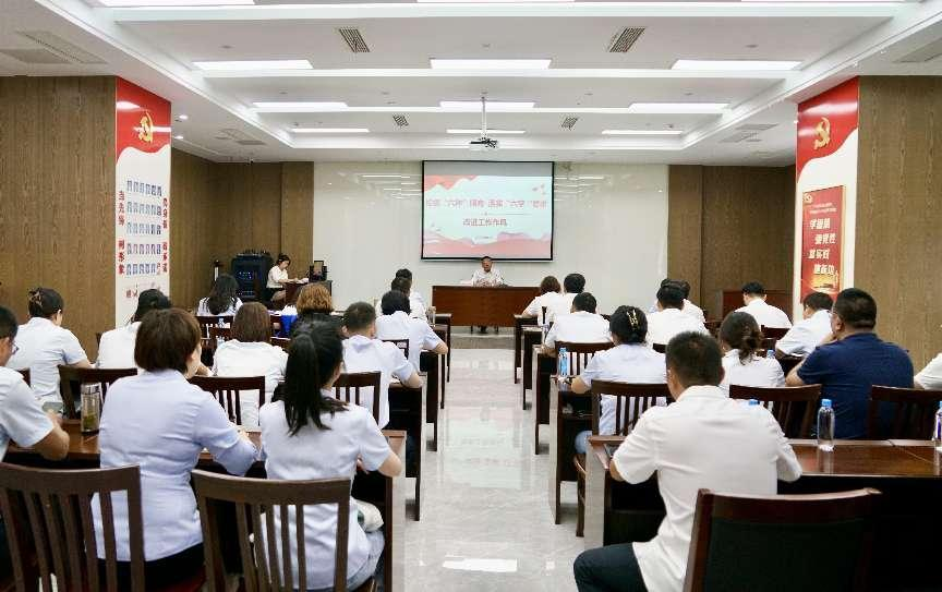 朱杰帶領與會人員解讀了干部隊伍需要檢視整改的“六種傾向”;傳達了張思忠董事長在集團2023年上半年生產經營分析會上提出的“貼轉聚拓助凈”六字要求。