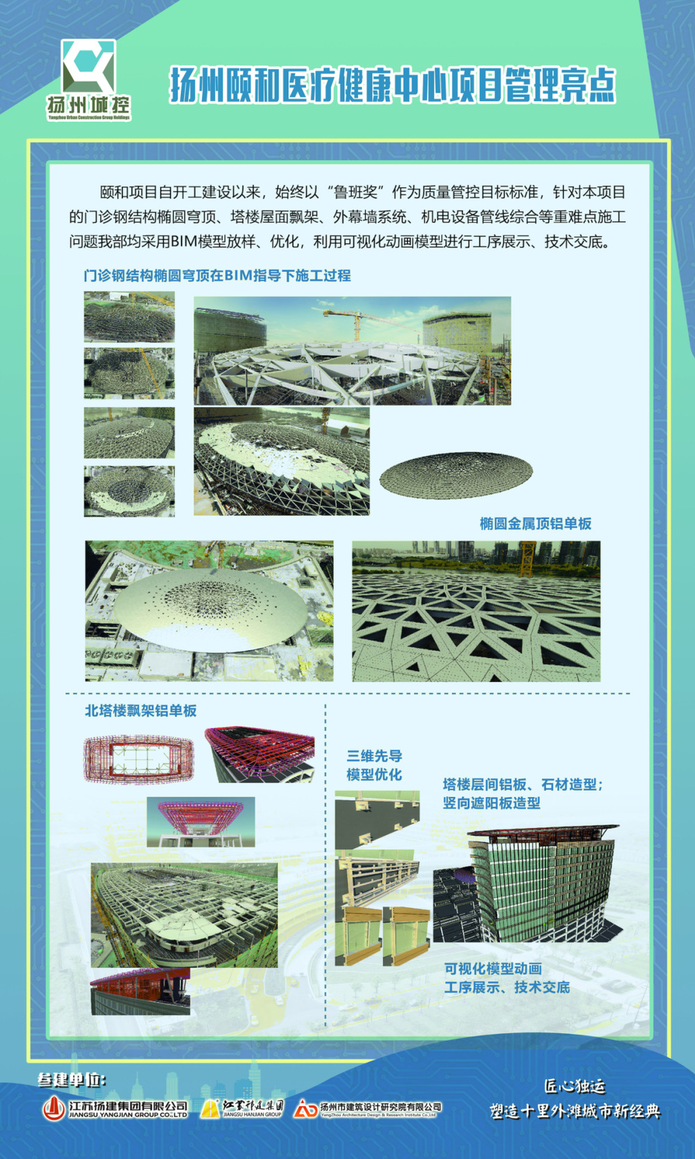 揚州頤和醫療健康中心(揚州市婦女兒童醫院)項目位于江廣融合區廣陵新城區域內,項目一期總投資19億 ,工程占地99.7畝,總建筑面積約20萬平方米,其中地上面積約12.26萬平方米,地下面積約7.74 萬平方米。該項目將建成一所開放床位1000張的,集醫療、教學、科研、預防、康復為一體的三級??茓D女兒童醫院。項目于2020年3月正式開工,2021年12月主體工程驗收合格。在疫情的考驗下,頤和項目部各參建單位建設者加班加點、日夜奮戰,最終在2023年1月完成項目整體竣工驗收,12月16日正式投入使用。