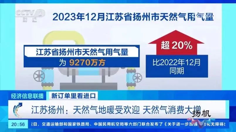 統計數據顯示,近些年,因住宅規劃、天氣等原因,揚州市用氣需求顯著提升。2023年僅12月一個月,全市天然氣用氣量為9270萬方,相比2022年12月同期,增長超20%。立足雙碳背景之下,未來,揚州還將繼續致力于打造低碳能源數字化系統。