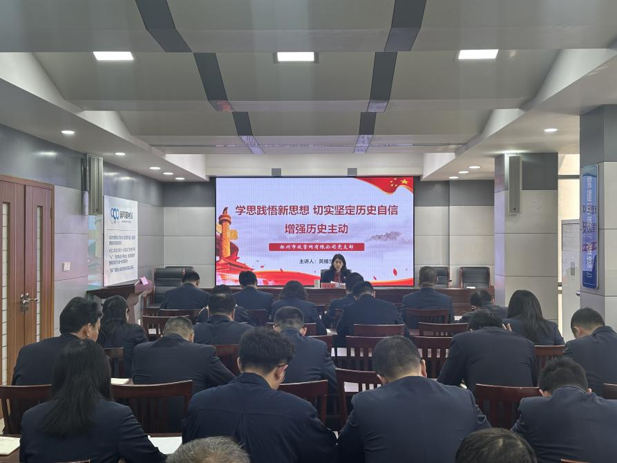 會議集中學習了城控集團2024年黨建工作暨全面從嚴治黨會議精神,部署了公司2024年黨風廉政建設工作。會上,黨支部書記、總經理黃棚蘭同志以《學思踐悟新思想 切實堅定歷史自信 增強歷史主動》為題講授黨課,教育引導全體黨員干部把握歷史機遇,加快干事創業的步伐,以深刻的歷史自覺引領我市排水事業發展朝著更加現代化、智慧化的方向不斷邁進。