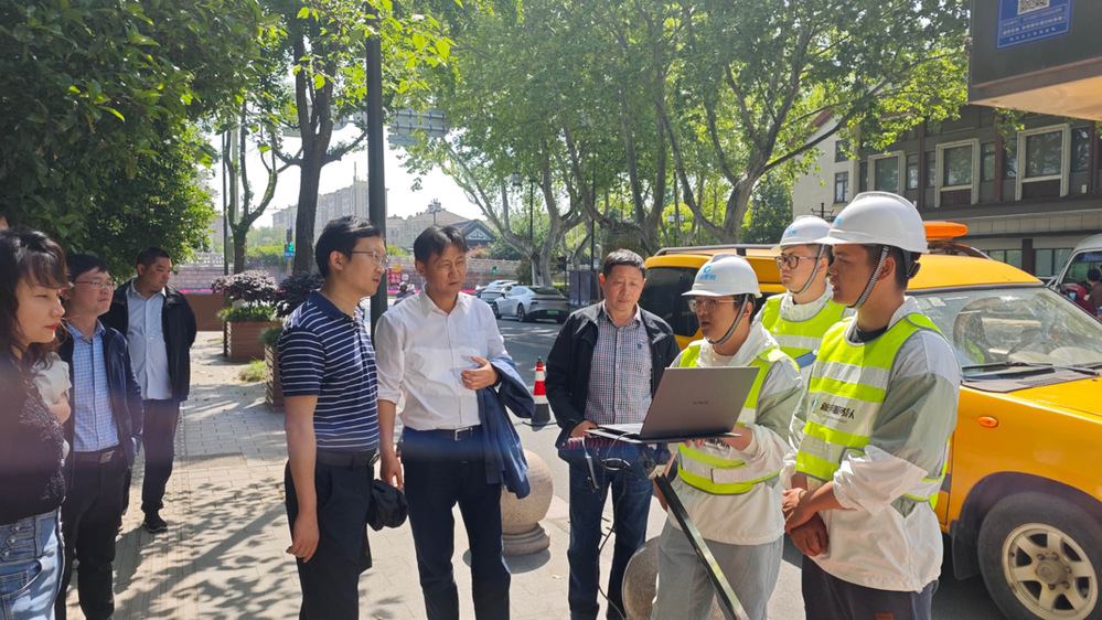4月25日上午,江蘇省城市生命線安全工程建設推進工作領導小組領導在鹽阜路雷達空洞探測現場,實地調研揚州市政管網公司雷達空洞探測工作開展情況,并給予技術指導。