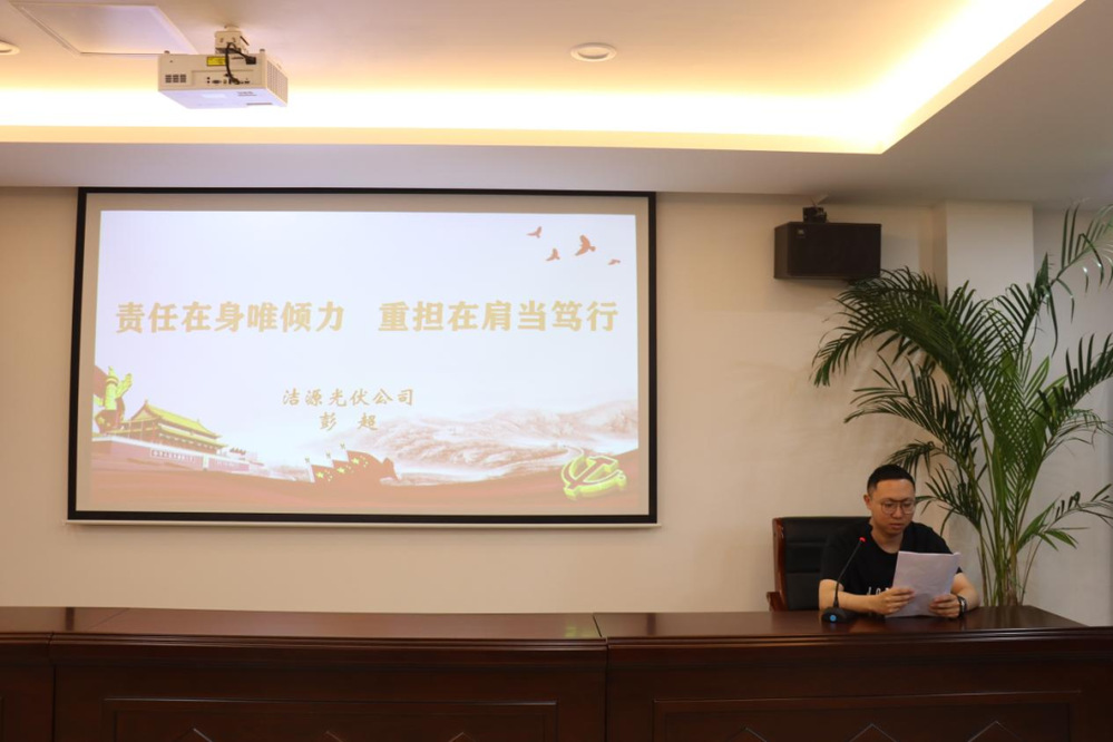 為深入學習貫徹習近平新時代中國特色社會主義思想和黨的二十大精神,引導干部職工以講促學、以學促干,5月30日下午,潔源光伏公司黨支部組織開展“我是黨課主講人”學習宣講活動,全體黨員參加活動。