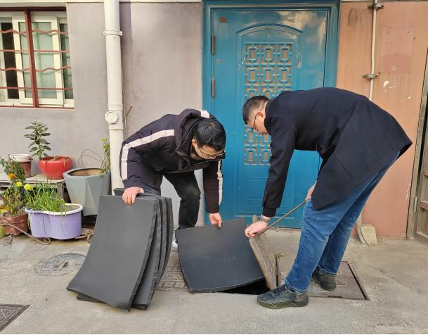在社區負責人的協助下,黨員們迅速分組,攜帶專業工具和保溫棉材料,分赴各個樓棟給水表箱“穿衣蓋被”。黨員們以身作則,不畏嚴寒,手持保溫棉細心鋪設在每一個井蓋里,確保每一處細節都不遺漏。