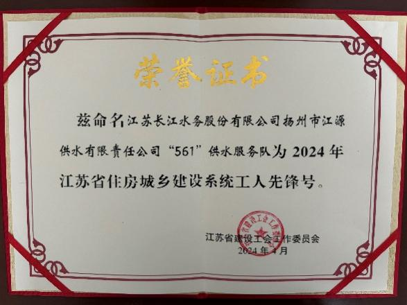 長江水務江源公司黨支部旗下的“561”供水服務隊自成立以來,以其卓越的服務和無私的奉獻贏得了社會各界的廣泛贊譽,今年“561”供水服務隊更是榮獲了“江蘇省住房城鄉建設系統工人先鋒號”的榮譽稱號,這不僅是對他們供水服務工作的肯定,更是對未來持續打磨“三心”黨建服務品牌的期許。