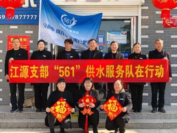 長江水務江源公司黨支部“561”供水服務隊成立于2022年,依托團市委“青年文明號”榮譽團隊為載體,秉承“守初心、用真心、讓用戶更放心”的服務宗旨,面向廣大鄉鎮用戶,塑造了一支真情服務用戶、心系社會的團隊。他們堅持供水人的初心,把“供水服務,為民解憂”作為服務工作的出發點和落腳點,創新服務措施,優化服務延伸,進一步提升了用戶的幸福感和滿意度,展現了新時代供水人的良好形象。“561”供水服務隊以隊長吳留毅同志名字諧音命名,“5”代表成立時的五名青年班組成員,“6”代表六項便民“心”舉措,“1”代表踐行一顆黨員“初心”,提供細心、愛心、耐心便民服務舉措,讓用戶放心、安心、舒心用水。