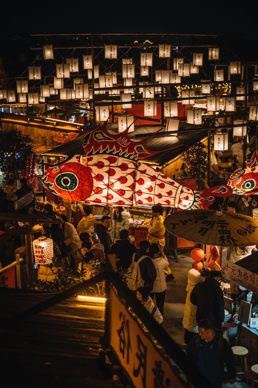 鳳簫聲動,玉壺光轉,大魚璀璨,洄游入關,民俗魚燈來東關集啦,年終獻禮迎接百年魚燈之美,新年到來之際一定要去看一次,為來年討個好彩頭。為迎接新年的到來,月下東關漢森熊市集進行了元旦換裝,并在12月28日至1月5日晚,舉辦了精彩的新年魚燈巡街會,為元旦佳節增添了濃厚的節日氛圍。在12月28日的晚上,市集上燈火輝煌,各式各樣的魚燈在夜色中熠熠生輝。這些魚燈形態各異、色彩斑斕,有的小巧精致,有的則氣勢恢宏,仿佛一群活潑的魚兒在夜色中游弋。巡街隊伍由身著傳統服飾的演員們組成,他們手持魚燈,沿著市集緩緩前行,為游客們帶來了吉祥如意的祝福。此活動一直延續到新年1月5日,每晚與游客相見。除了魚燈巡街會外,月下東關漢森熊市集還設置了多個互動環節,讓游客們能夠親身參與到慶祝活動中來?,F場不僅有豐富的美食攤位,還有各類互動游戲和表演節目,讓游客們充分感受到了節日的歡樂氛圍。此次月下東關漢森熊市集元旦換裝及新年魚燈巡街會,不僅為市民和游客們帶來了歡樂與祝福,也進一步弘揚了傳統文化與現代文化的交融之美。相信在未來的日子里,月下東關漢森熊市集將繼續為市民們帶來更多精彩紛呈的活動與體驗。