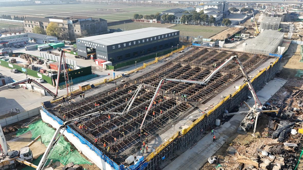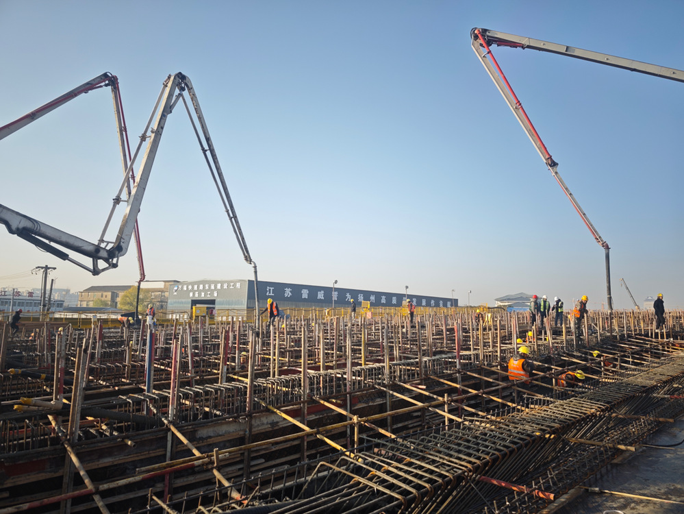 1月1日,萬??焖俾窎|延建設工程項目利用元旦假期進行全線最寬現澆箱梁混凝土澆筑施工。此次澆筑區域為Pm18-Pm21聯底腹板,橋寬37.16到44.26米,采用泵送C50混凝土,共計3300方,本次澆筑1800方,澆筑用時約20小時。
