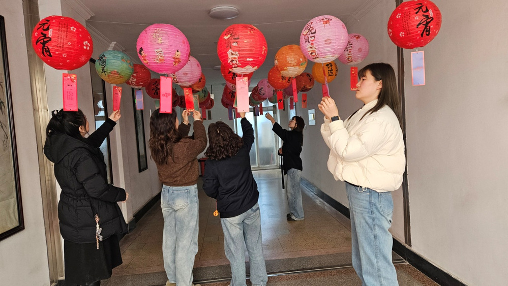 “慶元宵”現場,工作人員早早備好糯米粉、餡料以及鍋具等必需品,在了解制作方法和注意事項后,大家挽起袖子上陣,你和面、我包餡,一邊包著湯圓,一邊聊著元宵節的習俗。隨著一雙雙巧手揉、搓技藝施展下,一個個白胖胖的元宵被排列整齊,祝愿著新的一年“福氣滾滾來”?!安聼糁i”是一項歷史悠久、趣味性強的傳統民俗。在猜燈謎現場,大紅燈籠一個個高高掛起,一條條燈謎懸掛在燈籠之下,隨著主持人介紹讀題,一場“頭腦風暴”正式拉開帷幕,大伙兒你一言、我一語,互相提示和討論,燈謎答案最終被成功揭曉,答題正確者可將手中謎題兌換成手工花燈,大家在猜燈謎的活動中體驗著別樣的樂趣。