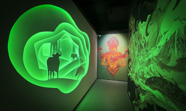 展館以《山海經》中記載的128只奇異神獸為核心,通過數字雕塑、全息投影、交互裝置等前沿技術,將古籍中的文字轉化為可感知的立體奇觀。比翼鳥展翅時羽翼流光溢彩,狍鸮(饕餮)的咆哮聲震耳欲聾,帝江的混沌之舞在光影中若隱若現……18個主題展廳猶如18個平行時空,其中最令人驚艷的“四季”展廳,只需佩戴特制眼鏡,便能親歷春日百花綻于指尖、冬雪紛飛沾衣欲濕的四季流轉。