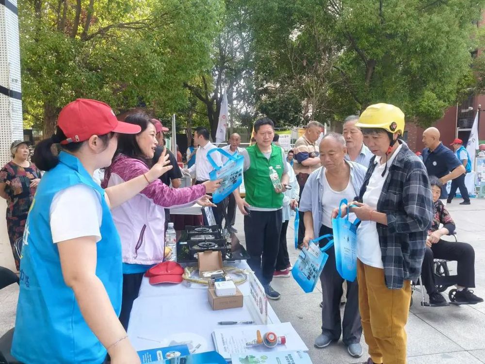 在湯汪花園梅花苑,來自城控集團下屬揚州中燃、長江水務、供熱公司、市民卡公司、名城公司的20多名青年志愿者設立服務臺,以“安全宣傳+上門服務”的方式開展便民服務。志愿者們一邊耐心解答地居民關心的生活安全問題,一邊向居民發放安全宣傳手冊與小禮品,將具體案例與用戶提出的問題相結合,讓用氣、用水、用熱安全常識深入人心。結合居民現場訴求,志愿者們還提供了燃氣上門安檢、用水器具檢測、市民卡現場充值、居民燃氣現場開戶以及食材加工等便民服務。