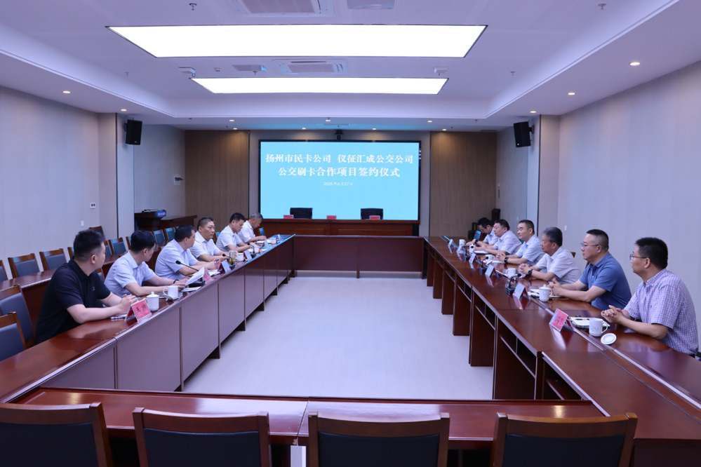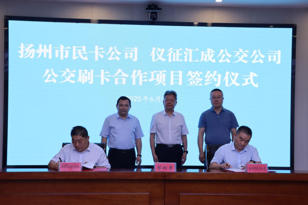 在全體與會人員見證下,雙方共同簽署了揚州、儀征公交刷卡合作協議。