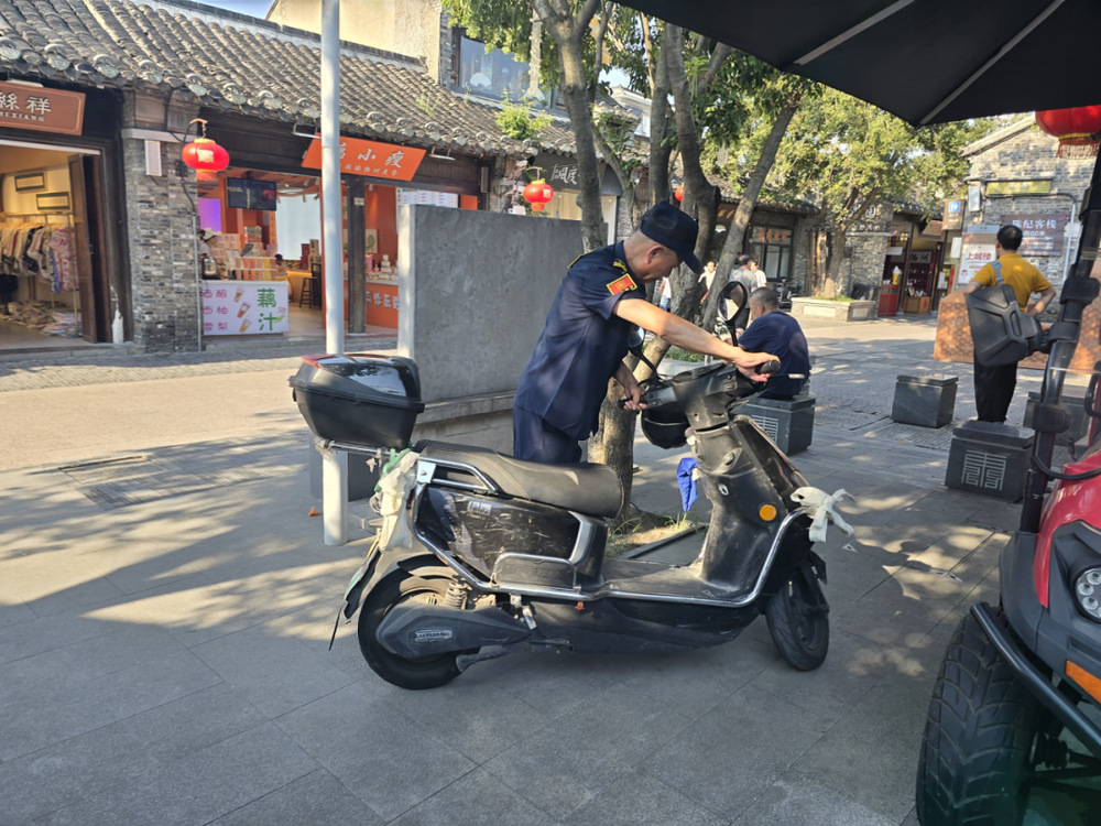 傍晚7點,人流達到峰值。老劉站在電瓶車禁行區前,汗水順著脖頸滑進衣領。師傅,通融下?孩子等著吃飯呢!游客舉著手機直播,鏡頭對準老劉。他接過電瓶車,推到200米外的電動車停放點:您看,這石板路是文物,電瓶車壓出裂縫就難修了。直播畫面里,彈幕突然刷起保安大叔好耐心支持文物保護,老劉憨厚地擺擺手,繼續引導下一輛。