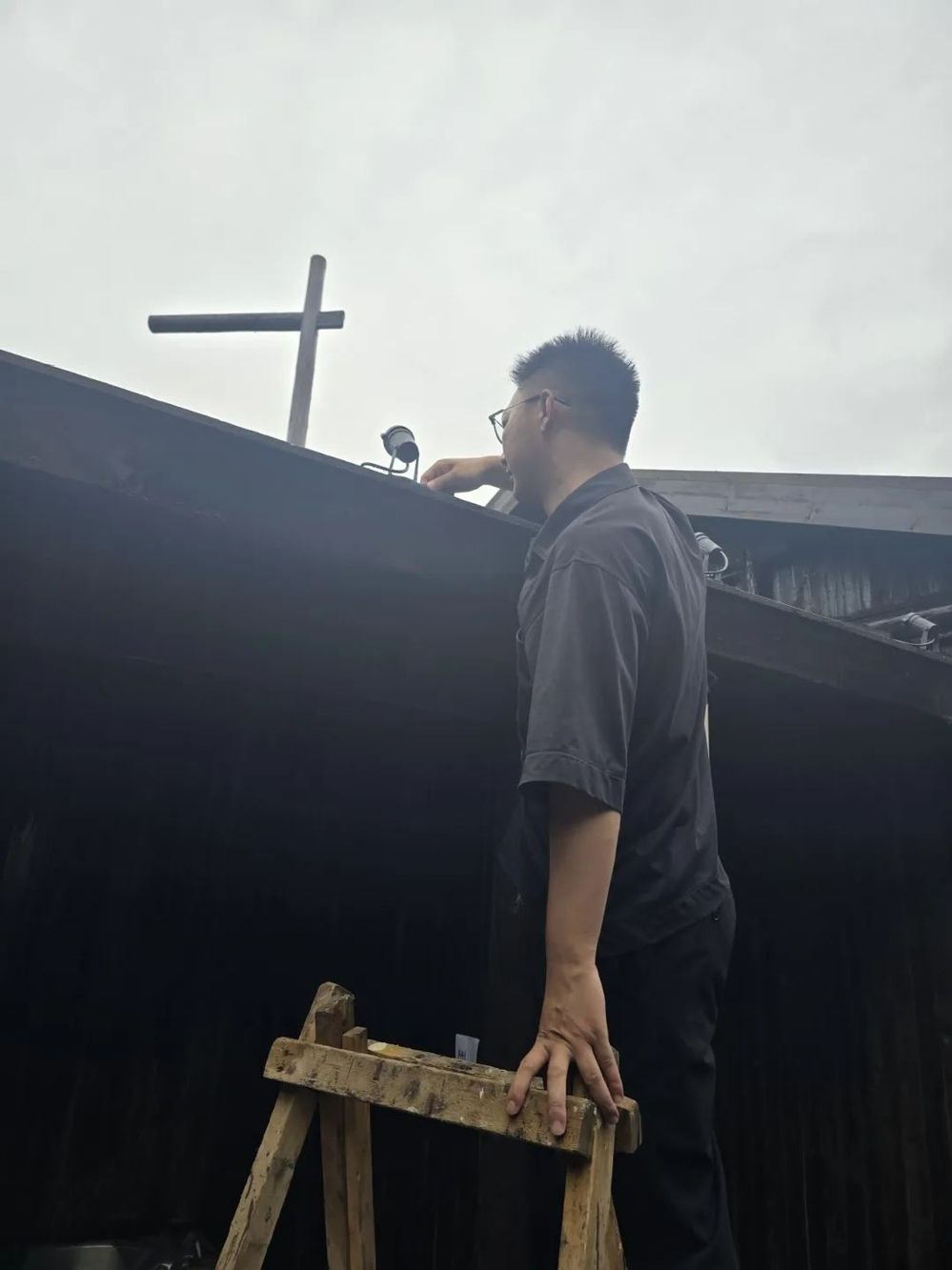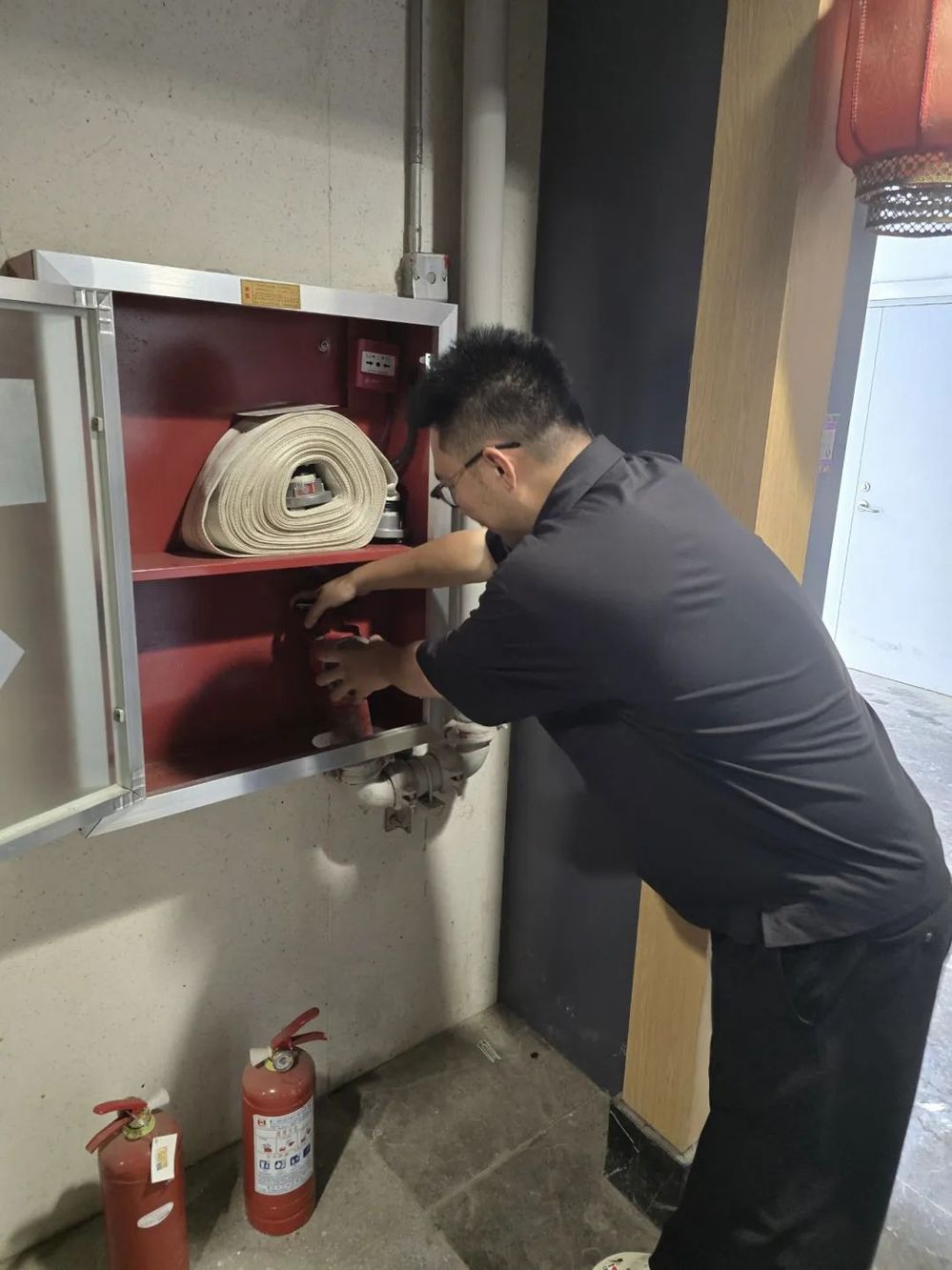 下午2點,魯毅帶著“安全禮包”來到街區某民宿。他爬上木梯檢查屋頂太陽能熱水器固定情況,發現支架螺絲松動,立即掏出電動扳手,指導商戶用扳手進行緊固。轉入公共區域,魯毅的目光被墻角斑駁的接線板吸引?!巴踅隳?,這截銅線已經薄得像紙片,同時開空調和熱水器,它就會像您煮的陽春面——發燙、發軟!”話音未落,他掏出帶有過載保護的新插座,當著眾人接上電熱水壺,在熱水壺燒開的瞬間,咔嗒一聲清脆的斷電聲讓空氣凝固,商戶不由得驚出了一身冷汗。