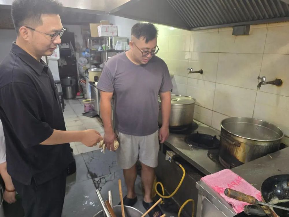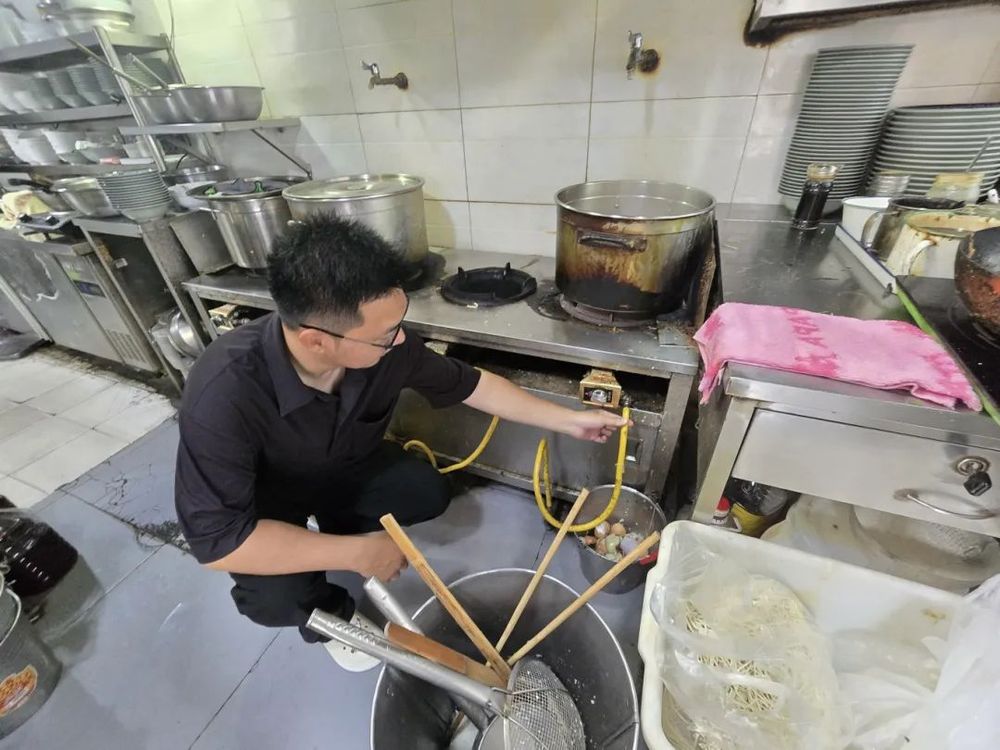 上午7點,東關街的晨光剛剛漫過青磚墻,安全員魯毅便已穿上工作服,開始了一天的工作。他首先來到街區東側的餐飲商鋪聚集區,手持測溫儀檢查后廚用電情況?!巴跏?,這根軟管用了三年了吧?臺風天風大,咱們換個防爆管更安心?!濒斠氵呎f邊聯系燃氣公司工作人員上門更換新管,不到一小時便完成更換。這是他今日處理的第3起燃氣隱患。