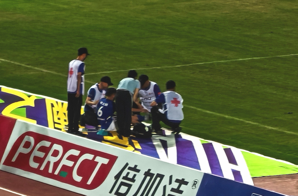 比賽現場,隊員們按照賽事組委會統一部署,身著統一制服,與市衛健委、急救中心等專業醫療團隊緊密配合,在球場關鍵點位待命,一旦裁判示意需要醫療介入,擔架組隊員迅速入場。本場比賽中擔架組隊員共上場4次,隊員們嚴格執行標準操作流程,完成傷情評估、傷員固定及轉運,最大限度減少球員二次傷害風險。