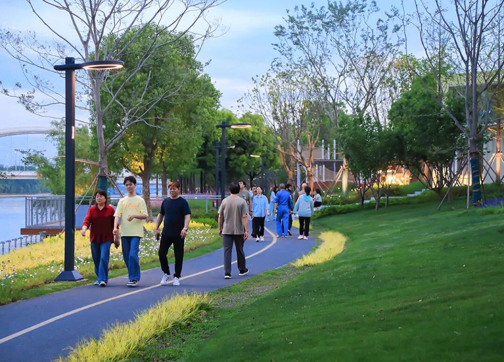 在這里,水清、岸綠、景美,市民和游客置身于流動的生態畫卷,休閑娛樂、放飛自我、流連忘返,共享綠意盎然的濱水步道,感受歷史與現代的交融、自然與人文的共鳴。