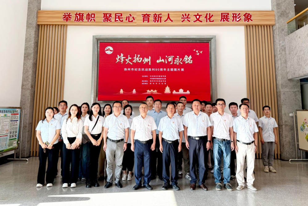 為深入開展愛國主義教育和革命傳統教育,紀念中國人民抗日戰爭暨世界反法西斯戰爭勝利80周年,9月22日下午,潔源環境黨總支組織40余名黨員及積極分子,前往揚州市文化館,參觀“烽火揚州,山河永銘”主題圖片展。