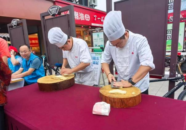 活動現場,來自城控集團下屬市民卡公司、揚州中燃、長江水務、供熱公司及名城公司的多支志愿服務隊早早準備就緒,通過設立咨詢臺、懸掛展板、發放宣傳冊和便民禮品等方式,為社區居民帶來了一場“零距離”的貼心服務。市民卡公司“e飛揚”志愿服務隊現場演示了市民卡充值、水氣線上繳費與過戶等操作,推動服務“掌上辦”;揚州中燃的志愿者們不僅發放安全手冊,講解用氣知識,更提供了免費的上門燃氣安檢服務,筑牢安全防線;長江水務的工作人員耐心解答水壓、水費疑問,并為有需求的居民登記上門檢查,切實解決用水煩惱;供熱公司積極宣傳供暖知識與垃圾分類常識,倡導綠色生活;名城公司長樂客棧的廚師們則亮出絕活,現場免費切干絲,展現了“揚州工匠”的親民風采,將活動氣氛推向高潮。