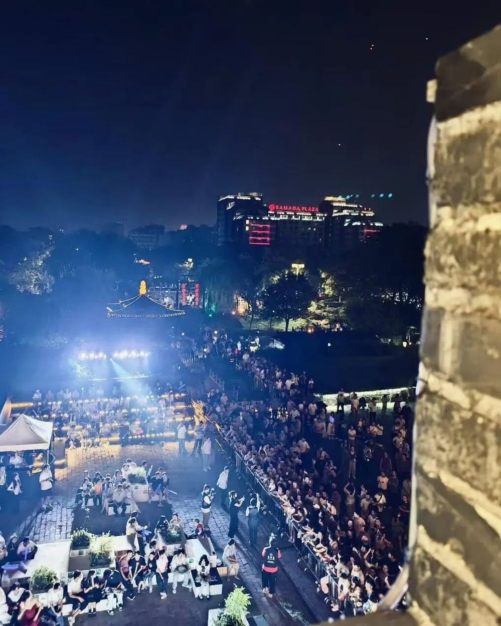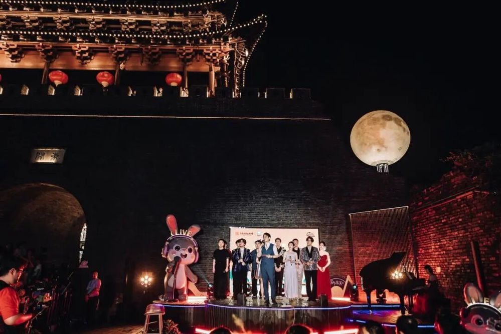 傍晚六點半,音樂會在主持人熱情洋溢的開場中拉開帷幕。在介紹完活動 “文旅賦能、文化碰撞、空間創新”的核心理念與到場嘉賓后,“紙鳶叩月?啟幕盛典” 儀式成為全場首個高潮——嘉賓們共同執起 “時光之鑰”,叩響象征古今交融的 “時光月門”。伴隨主題旋律奏響,系著熒光絲帶的大紙鳶從東關城樓緩緩升空,嫦娥舞者輕盈起舞,冷焰火瀑布傾瀉而下,光影與音樂交織,瞬間將千年甕城化作連接歷史與當下的 “音樂劇場”,正式宣告 “樂下東關” 微 Live 時光音樂會啟航。