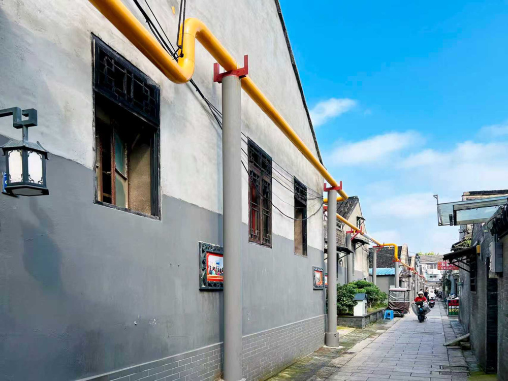 揚州市老城區街巷狹窄、房屋結構復雜,傳統的管道鋪設方式面臨巨大挑戰,致使部分片區居民長期無法使用管道天然氣。為解決這一民生痛點,揚州中燃公司市場部聯合東關街道多次走訪調研,深入探討,因地制宜采取了“設計更新、載立支柱”的施工方案。
