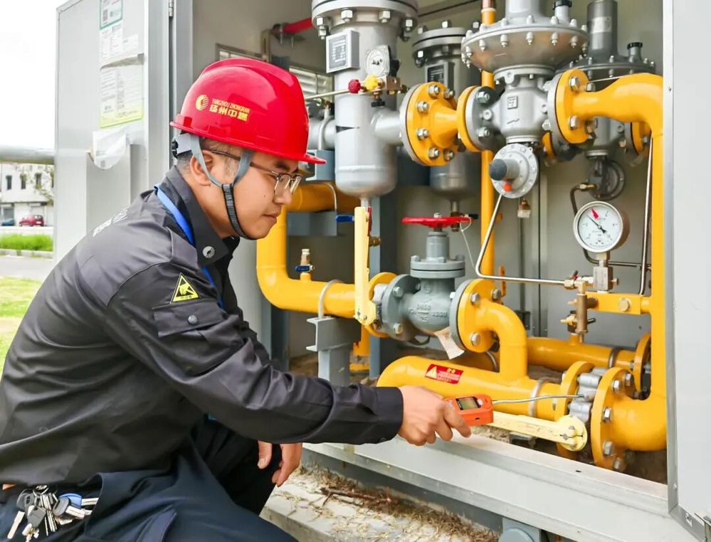 晨光熹微,韋煒已穿戴好防靜電工裝、安全帽,將10多斤重的工具包裝上電動車,再對照前一天的日志規劃路線,整裝待發。他負責的巡線區域覆蓋廣陵區李典鎮、頭橋鎮全域,巡檢管線總長近60公里,涵蓋42個調壓箱(器),每天步行2萬步是他的工作常態。