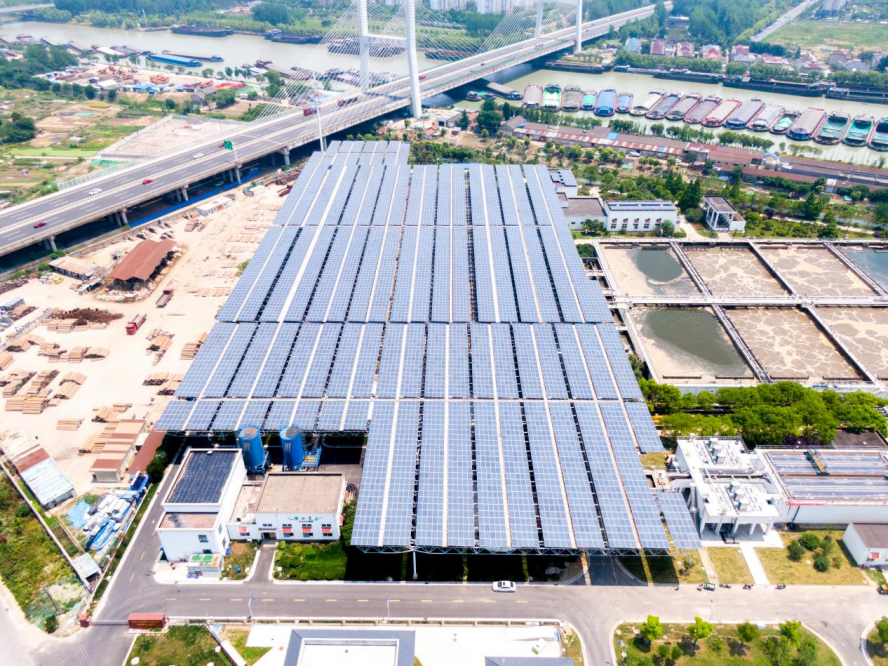 圖注:全國首批、江蘇首家建成投產的“光伏+水務”項目(湯汪污水處理廠電站)