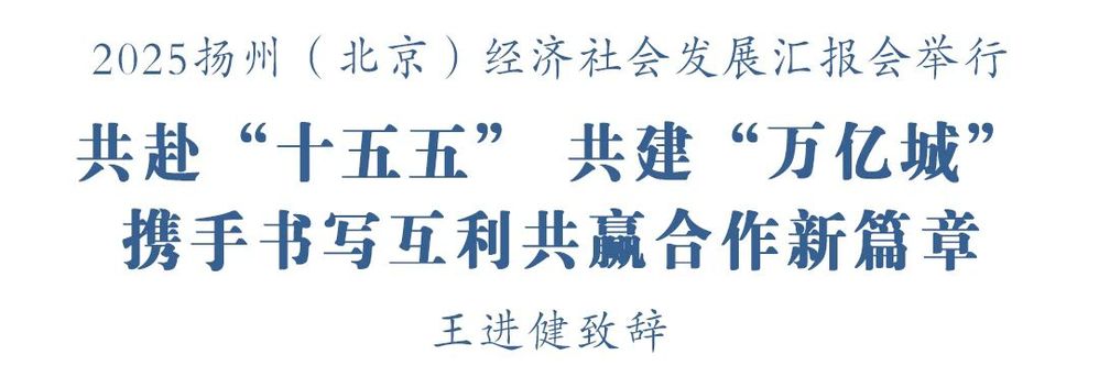 初冬北京,層林盡染。11月13日,2025揚州(北京)經濟社會發展匯報會在京舉行,全面展示揚州開放發展最新成果,深度對接北京優質資源與創新力量,以奮進之姿共赴“十五五”新征程,聚力推動揚州高質量邁入“萬億之城”,攜手書寫互利共贏合作新篇章。市委書記王進健出席并致辭。